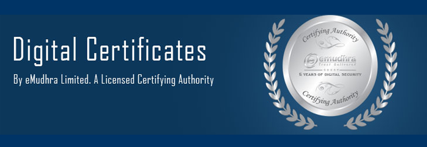eMudhra Limited is a Certifying Authority licensed by Controller of Certifying Authorities, under Government of India. eMudhra operates under the guidelines set by Information Technology Act. With more than one million certificates issued, eMudhra caters to all kinds of subscribers who use Digital Certificates for Income Tax, MCA (ROC), Tenders, Foreign Trade, Banking, Railways and many other needs.